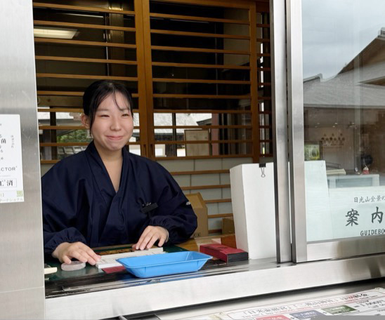 前職はカフェ店員でしたが、輪王寺の業務は参拝に訪れる方々への接客、ご案内が中心となり、接客業から転職した私でも問題なく働けます。新しい職場では、歴史を学びながら仕事ができ、給料体制も充実しています。具体的には、住宅補助や毎年上がる技能給があり、長期的なキャリア形成が可能な環境です。