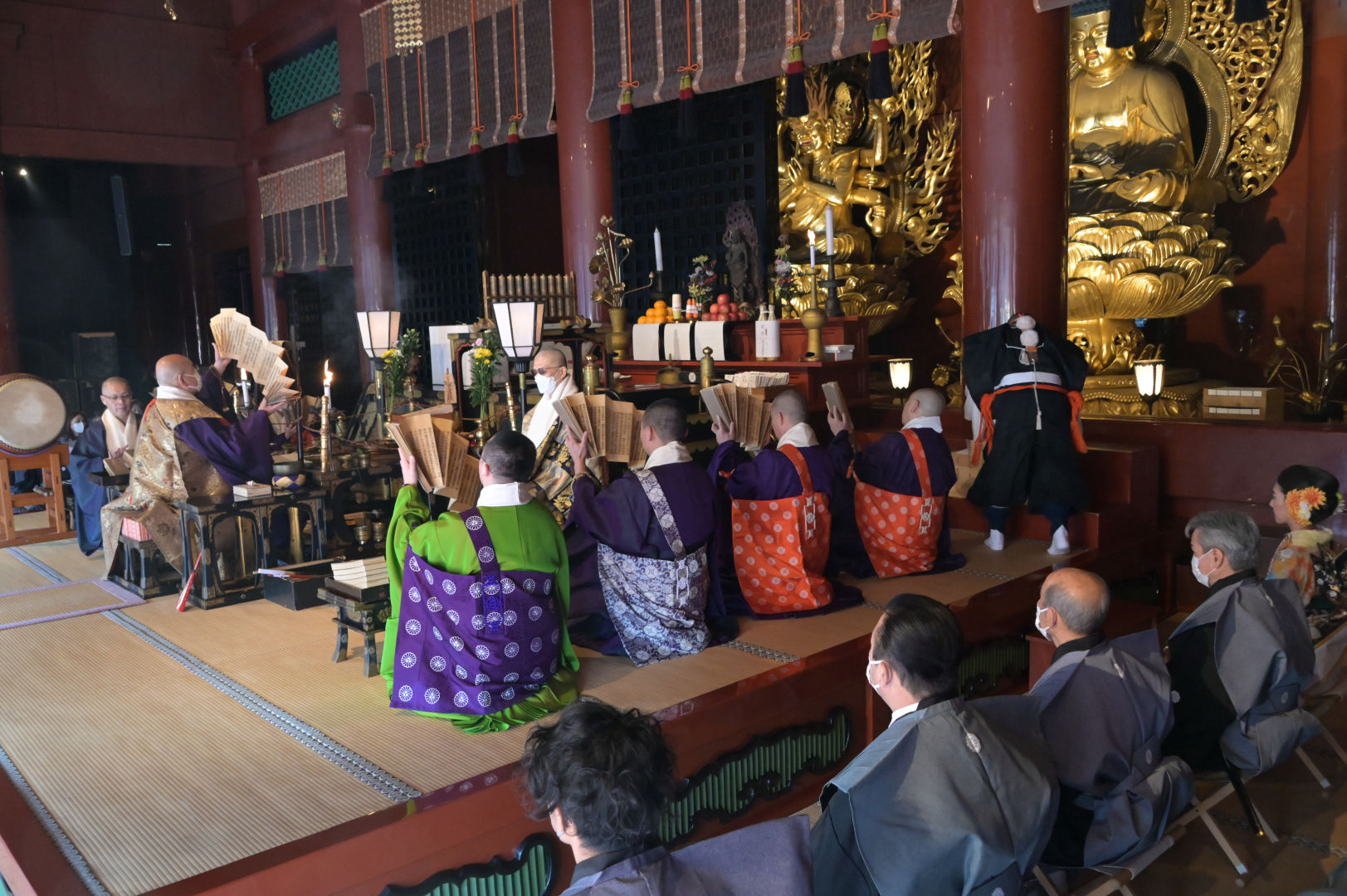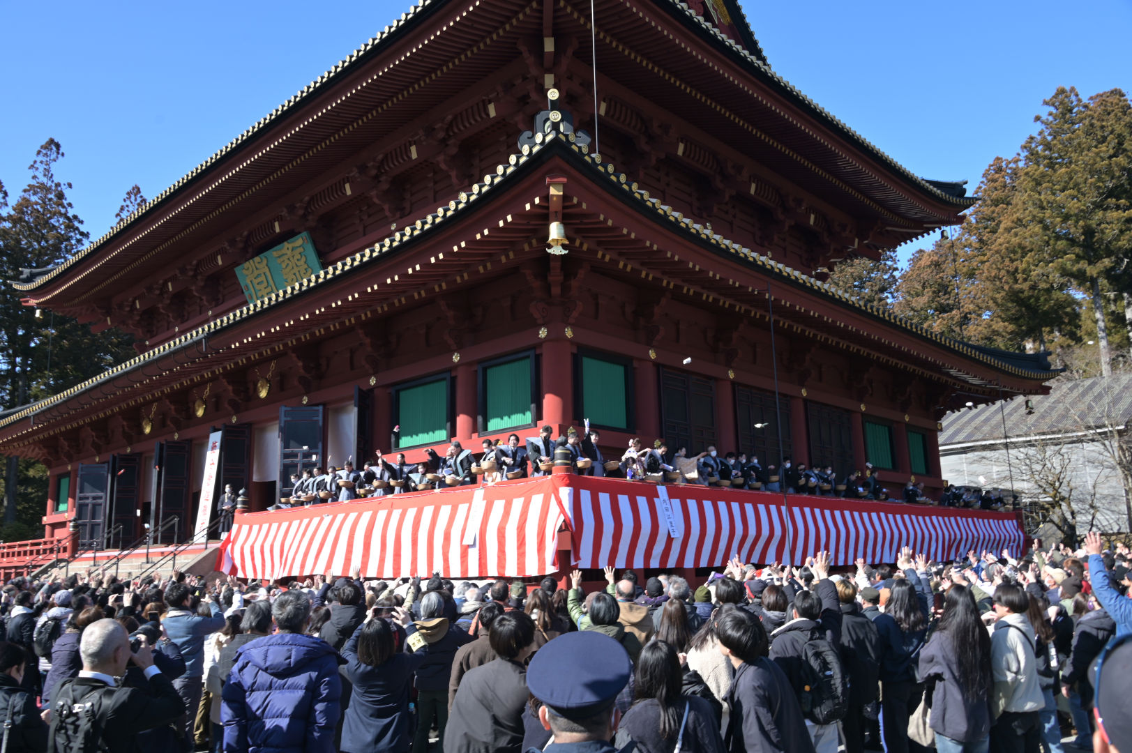 本堂(三仏堂)(節分追儺式) ※【縁喜がらまき】を行います。 ※縁喜がらまき終了後、本坊にて祝宴を行います。 ※特別年男・年女(ミス・インターナショナル)参加予定。 |
